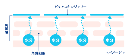 お肌の表面をピュアスキンジェリーがコーティングし、 肌の内側の水分を逃さない。だから、うるおいがずっと続く!