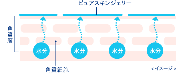 お肌の表面をピュアスキンジェリーがコーティングし、肌の内側の水分を逃さない。だから、うるおいがずっと続く!
